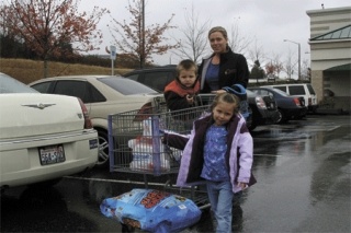The Wal-Mart parking lot was not as full as usual as the holiday shopping season tips off. Among those rising the rain was Joanie Johnson of Anacortes. She’d taken her two children, Maddie, 4, and Corey, 3, to the swimming pool that morning and stopped at the store to pick up dog food and other essentials. “I guess we didn’t have to go to the pool to get wet,” she said as she hurried the kids into the back of the family SUV to get them out of the rain.