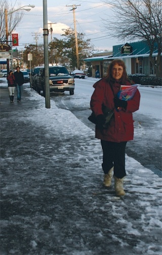 Peggy Timmins stopped by Mr. Music to pick up some music for her oboe and then it was off to the Wind and Tide Bookstore for some more shopping.
