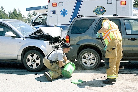 The chain reaction started when a Nissan Maxima struck a Honda CRV. A Ford Escape struck the Nissan, then a Saturn Vue struck the Ford. The Saturn SUV appeared to have the most serious damage.