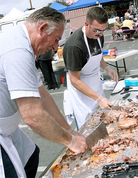 The second annual Fidalgo Avenue Block Party and Free Pig Roast took place Sunday in downtown Oak Harbor. Volunteers started preparing food Saturday so the meal could be ready in time for the 1 p.m. start of serving. Shortly after volunteers started serving, the line of people stretched through the parking lot at Old Town Mall to Fidalgo Avenue then over to Dock Street.