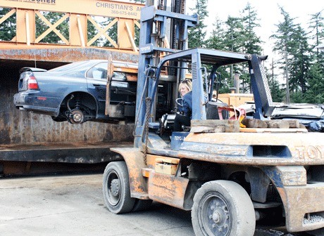 A methamphetamine-contaminated car that Oak Harbor police seized in a drug bust last December was turned into a steel pancake Thursday afternoon.