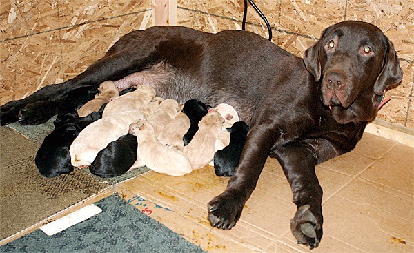 “They just kept coming,” Ken Hurst said Wednesday afternoon. When Sugar was finished, the Hursts were owners of one male black lab, six female black labs, five male yellow labs and four female yellow labs. Despite being a chocolate lab, Sugar did not give birth to any brown-colored dogs. Lacey, who had hoped to breed labs at one point, said a lab can give birth to either brown, black or yellow colored puppies.