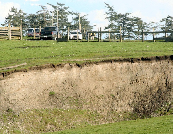 No cattle were injured at an unusual accident in the field with the so-called “cow crater” near Coupeville Thursday evening.