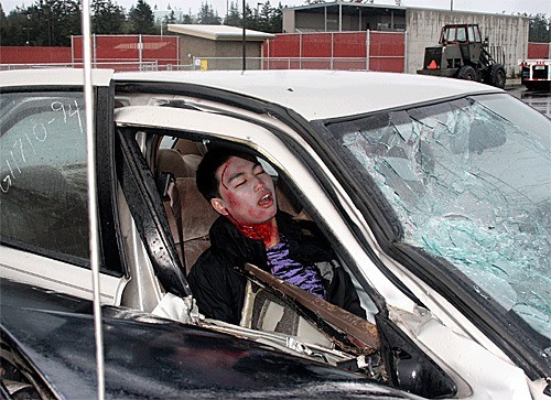 “Some kids are going to kid and laugh and joke about it because it doesn’t really hit home to them,” North Whidbey Fire and Rescue Training Officer Ray Merrill said. “Other kids who have been hurt by a drunk driver take it really seriously. I’ve watched the kids in the crowd look and say, ‘That’s a kid I know, they look real, they look dead.’ I’ve seen kids in the crowd start crying because it seems so real to them.”