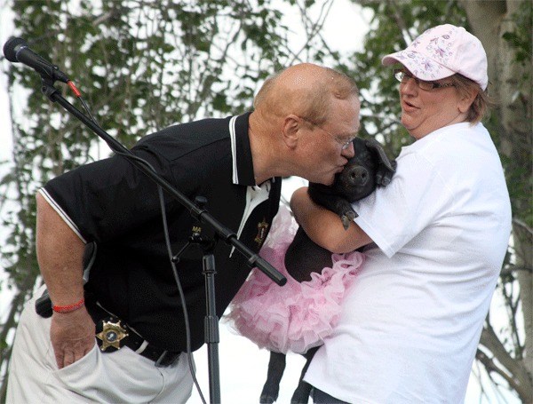 Tuesday evening Island County Sheriff Mark Brown puckered up to not one, but two, squealing pigs in front of a chanting crowd at Windjammer Park. Brown was the “winner” of the first-ever Big Kiss Off Challenge to take place at Oak Harbor’s National Night Out.