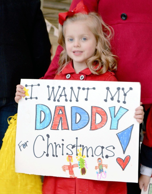 “She missed our son’s birthday,” said Orlando Franco, who was there with 4-year-old Diego, awaiting the arrival of Aviation Machinist’s Mate Second Class, Thalia Franco. “She misses him a lot. It will be nice for her to be home in time for Christmas.”