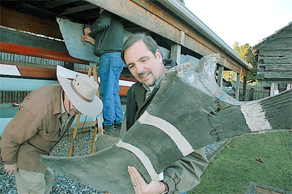 Enlisting the help of the Coupeville Lions Club and the members of the Coupeville Arts and Crafts Festival Association, the effort to free the canoe from its rack spanned several hours. It was eventually loaded into Dale Sherman’s waiting squash truck and transported to the Reuble Barn.
