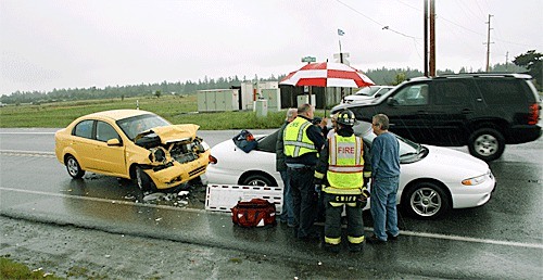 At approximately 3 p.m., the driver of a southbound Chrysler convertible was trying to make a left turn from Highway 20 onto Morris Road when a Chevrolet Aveo crashed into the car, said Trooper Jesse Greene with the Washington State Patrol.