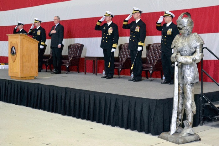 With that, Jacobs read his orders, immediately followed by the Grey Knights’ new leader, Cmdr. Kijek, who also read his orders and then told the crowd he was honored to take the helm of VP-46.