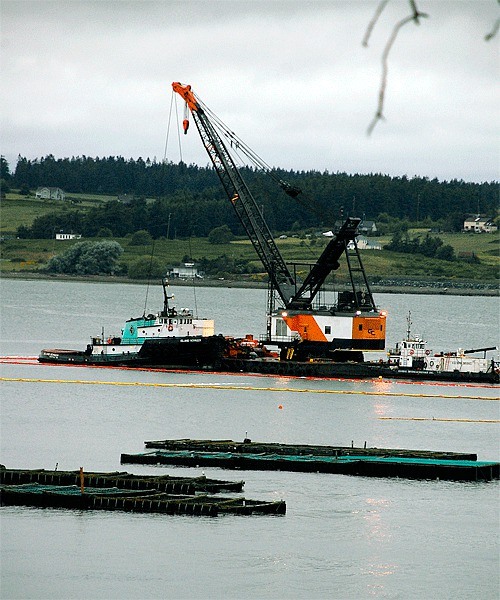 The biggest problem continues to be Penn Cove’s silty bottom. It’s so soft that the piles used to anchor a barge and crane in place were unable to hit a hard bottom, he said.