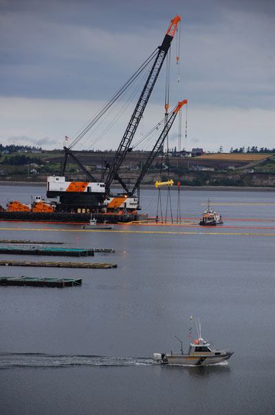 The operation to raise and remove a 128-foot crab boat that sank in Penn Cove three weeks ago has begun.