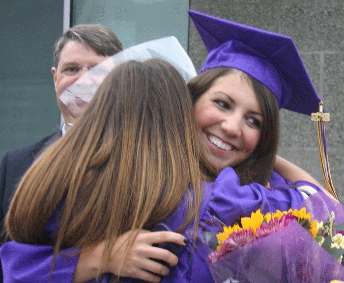 Graduate Sarah Morical received hugs from family members, including her mom, Oak Harbor native Tina Ford.