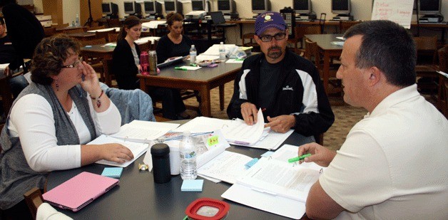 Middle and high school level English, math, science and career-technical education teachers attended intensive training last week. Wednesday afternoon, a group of English teachers was schooled on rhetorical devices, theme, tone and more at the high school. Like in their own classrooms, the “students” raised their hands to answer questions and read aloud.