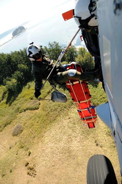 Within 45 minutes of the helicopter launching from NAS Whidbey, the man was inside the chopper and on his way to the hospital.