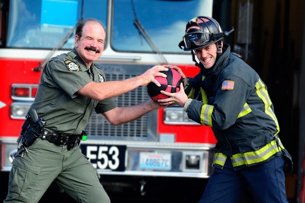 When Whidbey cops face off against island firefighters in a fundraising basketball match next Saturday, it will all be in good fun.