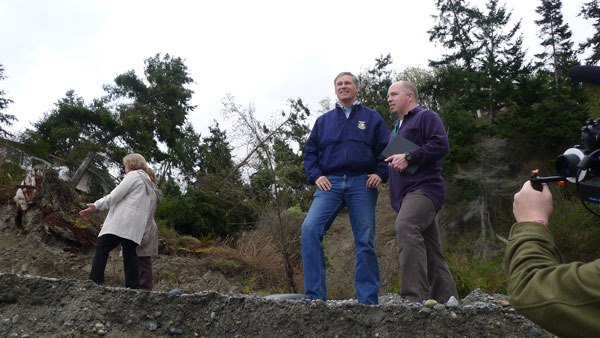 Ten days after Ledgewood was rocked by an enormous landslide, the tiny Central Whidbey development was visited by Gov. Jay Inslee Saturday and a host of other state and local elected officials.