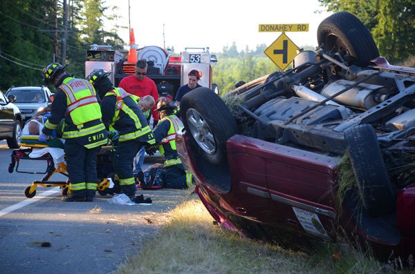 The vehicle came to rest on its roof. Emergency responders with Central Whidbey Fire and Rescue were on scene and assisted the couple. It appeared both were transported to Whidbey General Hospital for minor injuries.