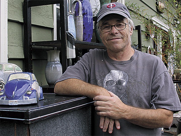 Ishler’s studio is both workshop and gallery with finished and unfinished pieces on display. He creates functional pieces such as bowls, cups and plates and decorative art such as crystalline-glazed vases, pit-fired pots and “humorous characterizations” of vintage cars.
