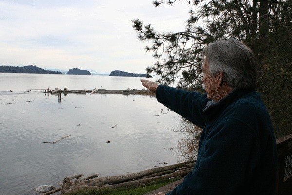 THE BACK deck of Baker’s home looks out over Ala Spit Park in Skagit Bay. Baker said he has learned to keep an eye out for the residents and fishermen who venture out there.