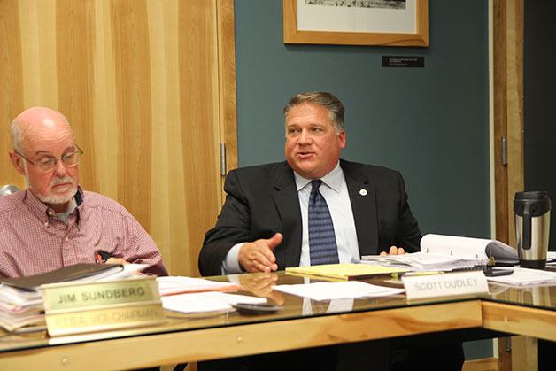 Oak Harbor Mayor Scott Dudley discusses issues during a recent Island Transit board meeting to review a state audit.