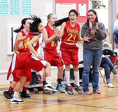 Fourth photo: OHMS’s Leille Salinger puts in two of her 19 points in the seventh-grade game.