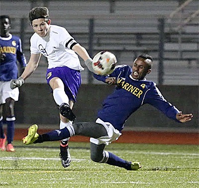 Mariner scored a goal in each half to trip the Oak Harbor High School soccer team 2-0 Friday, March 20, at Wildcat Memorial Stadium.