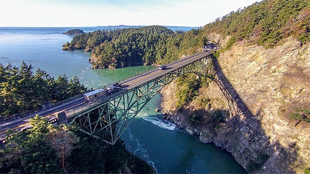 APPROXIMATELY 17,000 vehicles cross the Deception Pass bridge each day, a number that does not seem significant if compared to the 217,000 cars that pass through Seattle’s Interstate 5 corridor daily, or the 147,000 that cross the Interstate 90 floating bridge, according to Pearce.