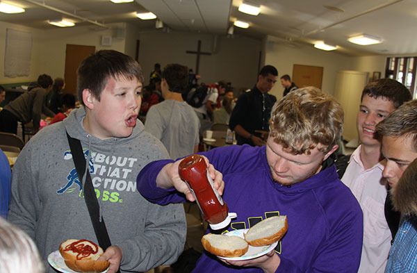 Soon after 1:15 p.m., the peaceful quiet inside the church was replaced by the voices of students excited to grab a quick bite, then burn some of that energy outdoors. A basketball court out back is popular as is a field where pickup football games take place.