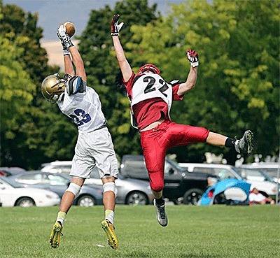 Bottom, a Wildcat receiver hauls in a pass.