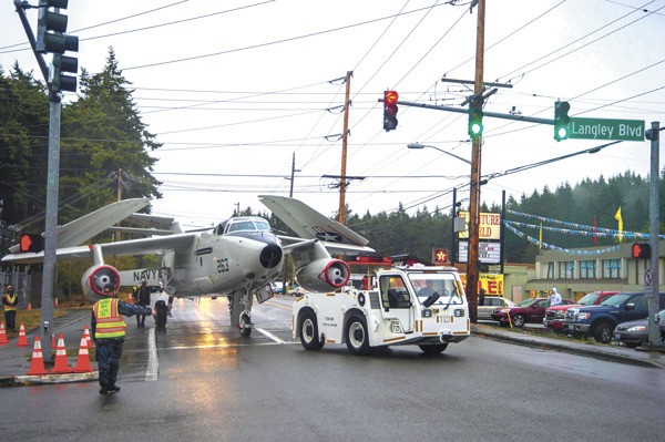 Crews shut down Ault Field Road early Saturday morning to move the jet to a spot just off base near the Langley Gate. During the next few weeks, workers plan to prepare the site to mount the jet on a static display.