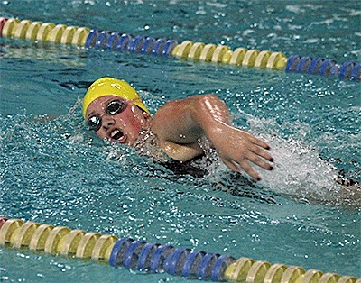 (Taliah Black helps the Wildcats win the 200 medley relay. Photo by Jim Waller.)
