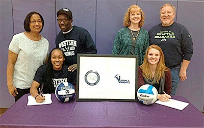 Two Oak Harbor High School seniors signed letters of intent this week to play volleyball in college next fall.