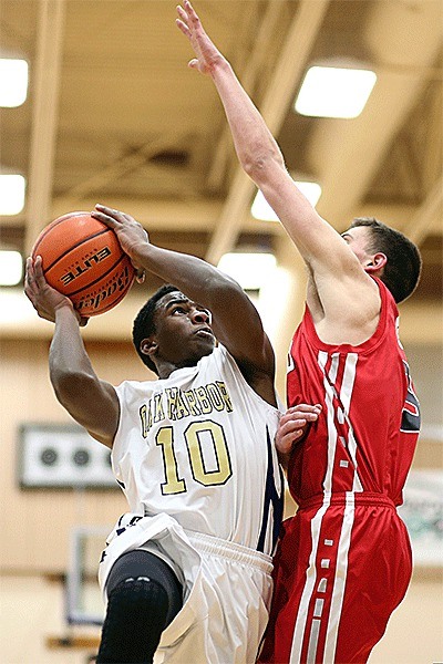 Oak Harbor’s Ozell Jackson (12) fights for rebounding position. Photo by John Fisken.