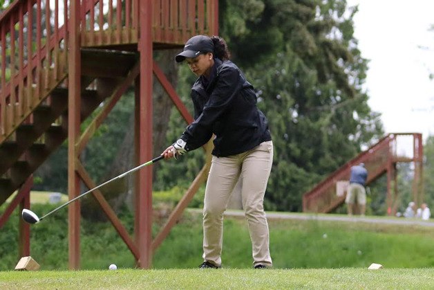 Oak Harbor golfers Resego Mooki and Jessica Monaghan qualified for the girls state golf tournament by placing in the top 18 at the District 1 Tournament Tuesday and Wednesday at the Kayak Point Golf Course.