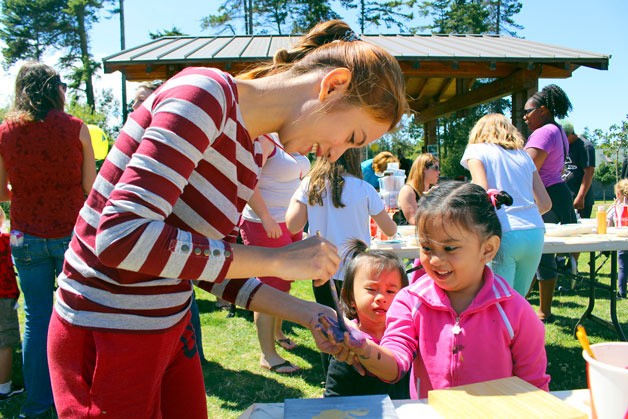 That party on a perfect Oak Harbor sunny day featured snacks, balloons and play time on the original equipment, and some new features, including an “Expressions Swing” that lets an older child or adult swing facing a baby.