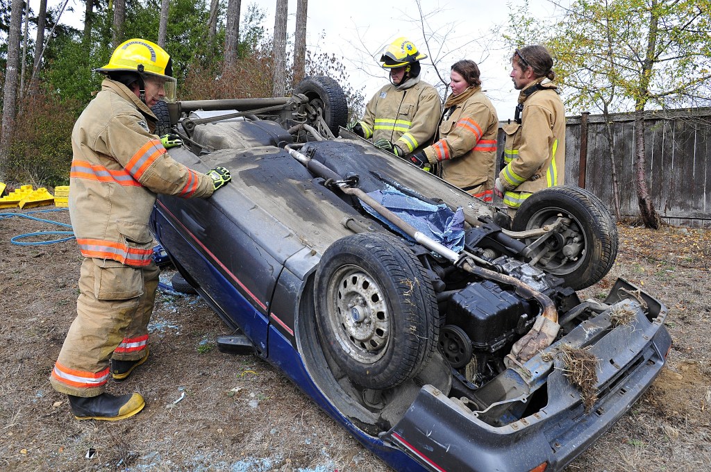 Volunteers with North Whidbey Fire and Rescue conducted realistic extraction training Saturday in Oak Harbor.