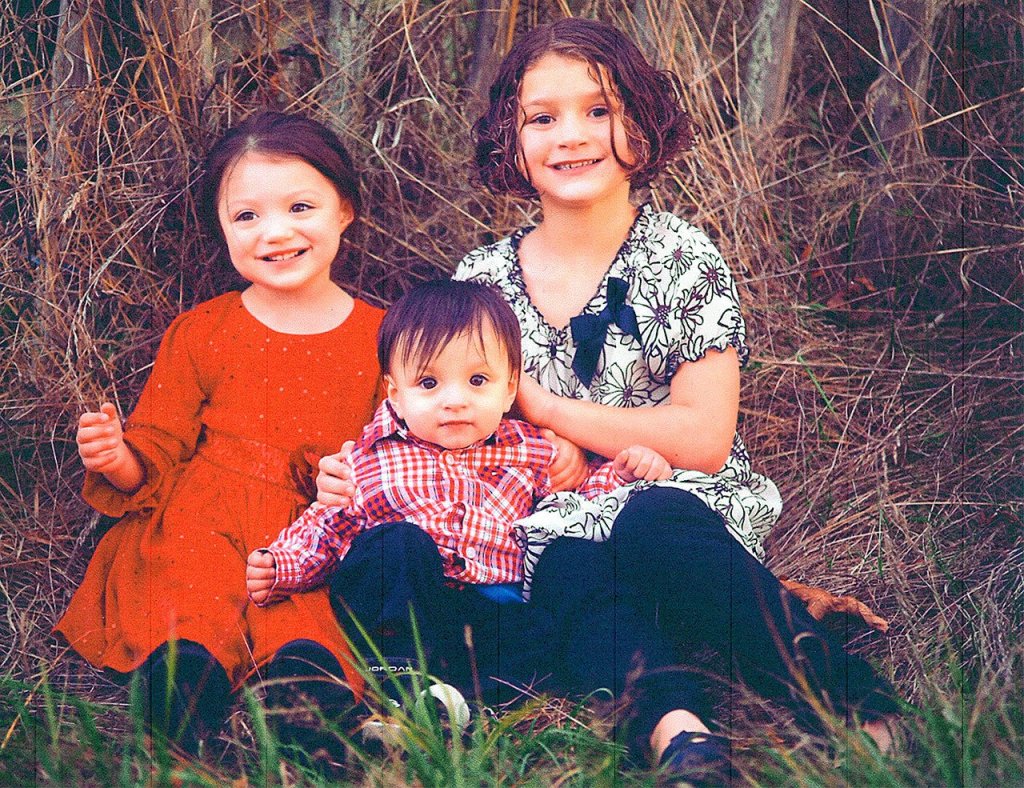 Ethan Edwards, center, is surrounded by his sisters Mia, left, and Alexis, in a photo taken in October. Photo provided