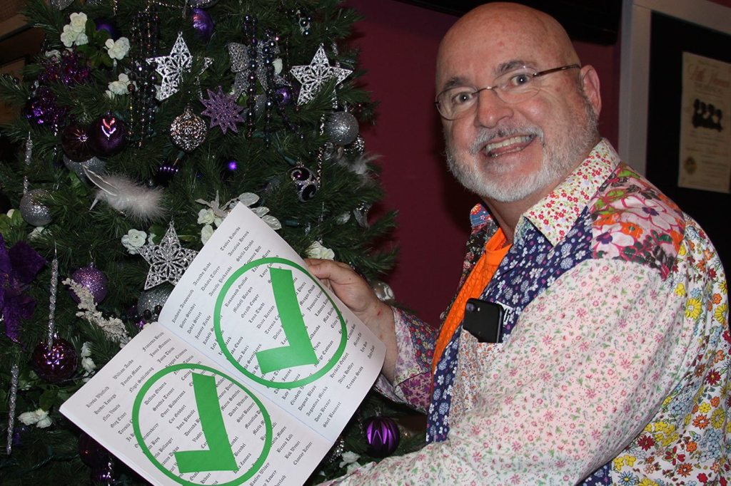 Entertainer JR Russell checks out Santa’s List prior to a rehearsal for “Christmas at the Playhouse,” Tuesday night at the Whidbey Playhouse in Oak Harbor. The holiday revue starts Dec. 1. Photo by Ron Newberry/Whidbey News-Times