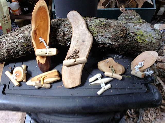 Prescott says the kids at South Whidbey Tilth love Rose’s spiel with his branch spinners. She added that he could care less if anyone actually buys the toys, since the fun is showing kids how they work and the storytelling that comes from the explanation.
