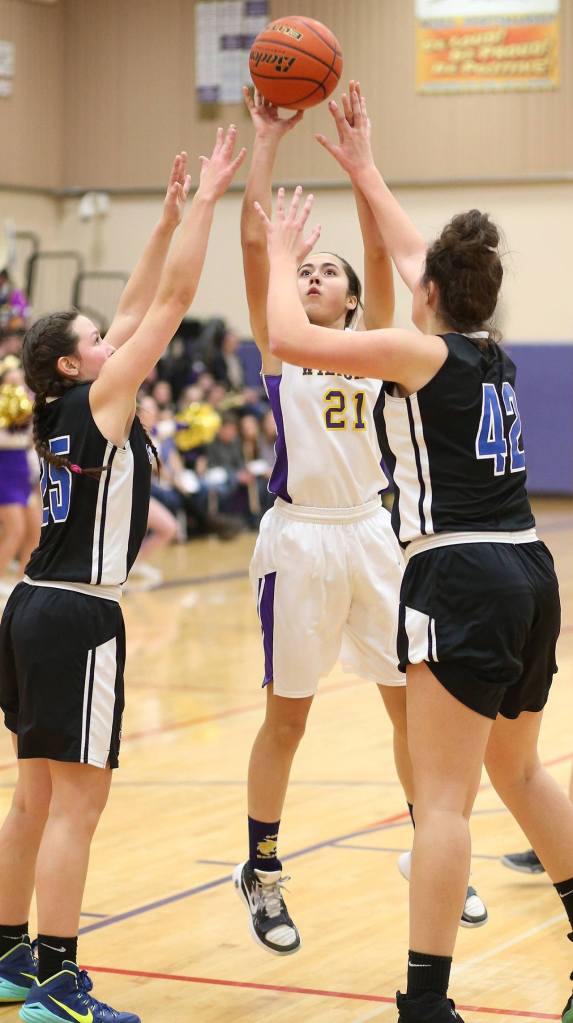 Oak Harbor got Shorewood’s attention right away. Bryn Langrock scored 5 points in the first quarter, Rashanna Graham 4 and Jordan Wood-Pina banked in a three-pointer as the Wildcats led 12-9 after one quarter.