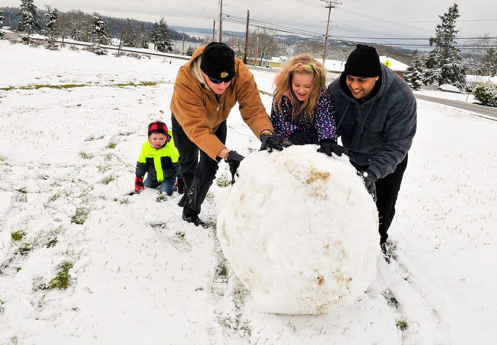 Monday-morning snow was a welcome sight for many children and military members on Whidbey Island who got a unexpected three-day weekend.