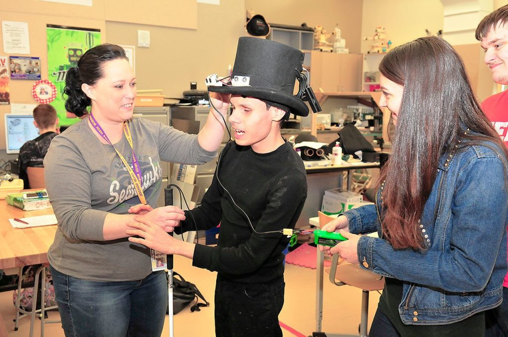 On Thursday, Oak Harbor High School’s advanced Robotics Team presented Gonzalez, who is blind and autistic, with a state-of-the-art top hat.