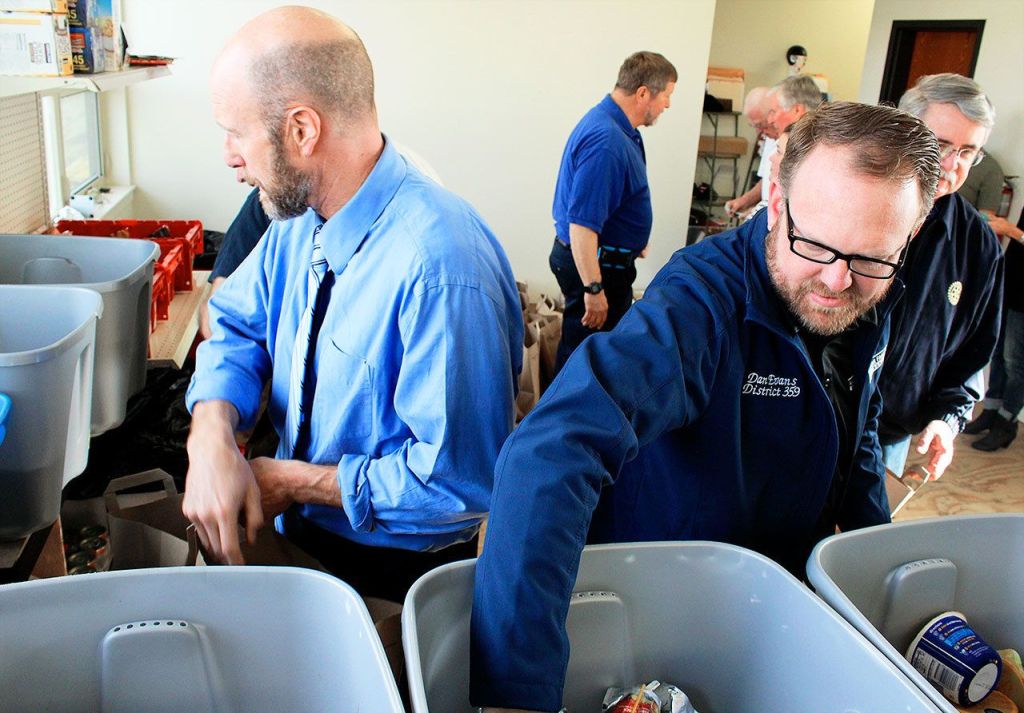 As the theme from “Rocky” played overhead, team members quickly moved from tub to tub, grabbing items. Loaded bags were gently dropped, then another empty bag scooped up to start again.
