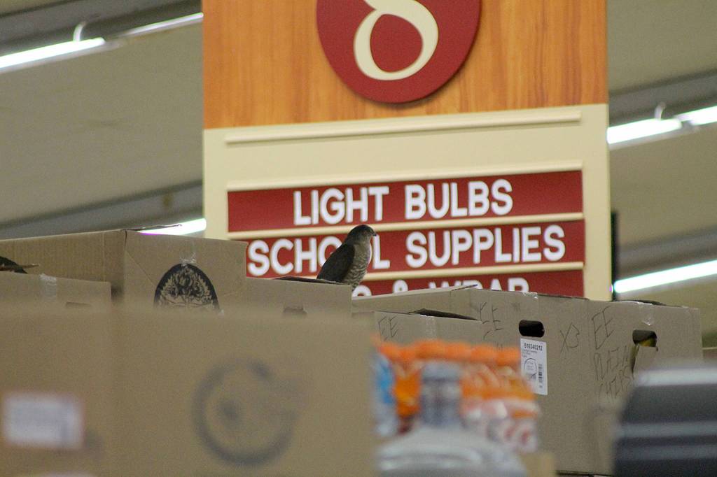 A sharp-shinned hawk made a Whidbey Island grocery store its home for about 12 hours on March 15.