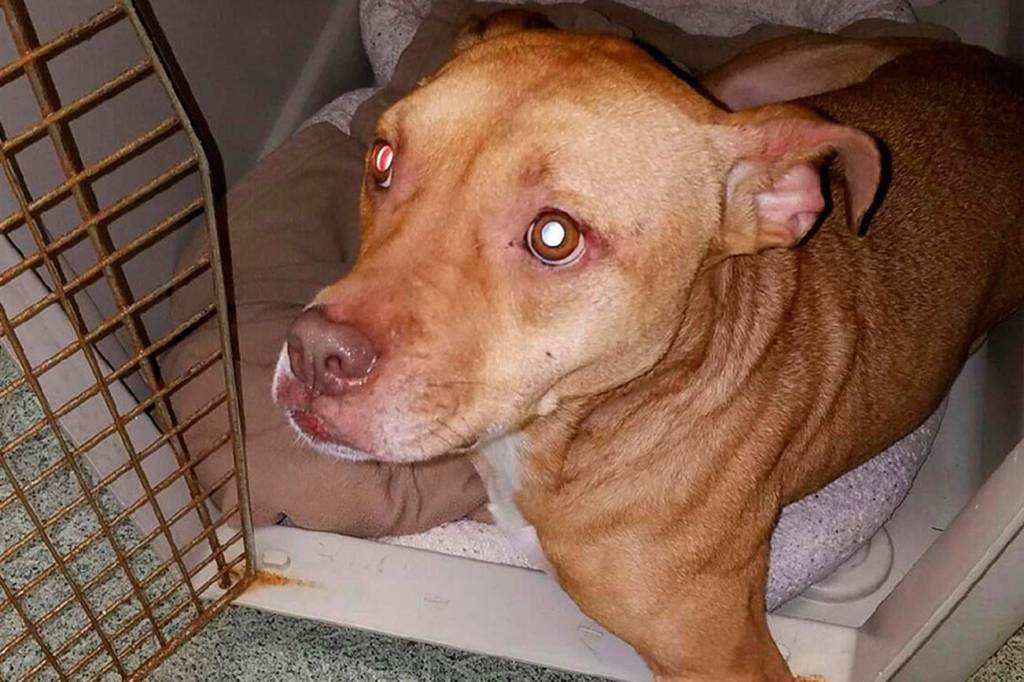 The pit bull was about 6 years old. She was a red-colored female with white on her chest.