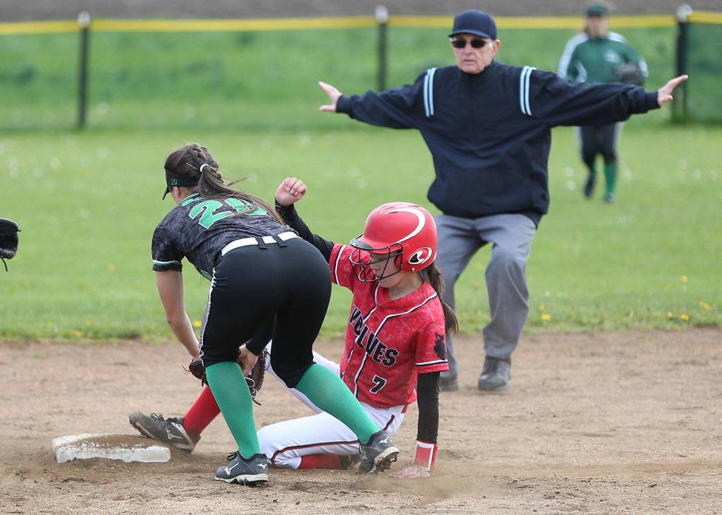 Klahowya scored a run in the top of the first inning and Coupeville came back with one of its own. Katrina McGranahan reached on a fielder’s choice for the Wolves and scored when Sarah Wright’s single was followed by an error.