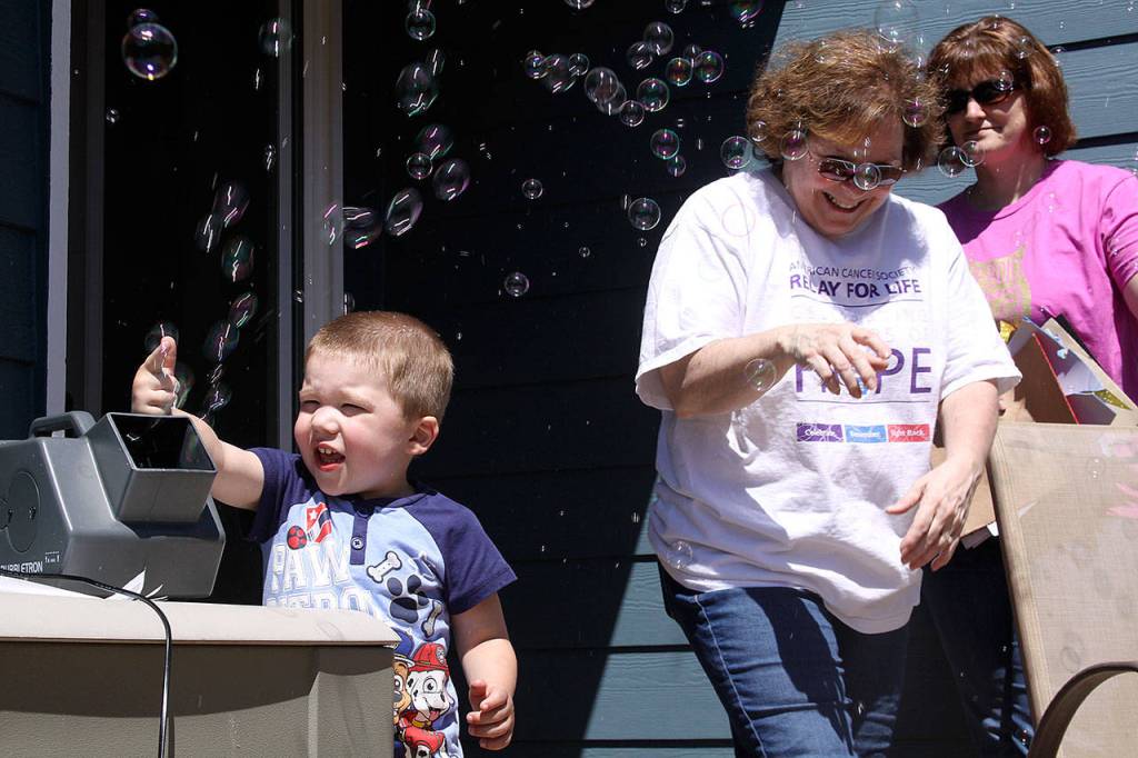 “He thinks this is fun and everything,” said Sharkey, one of the organizers of Relay for Life of Whidbey Island. “As they get older and understand and they learn things and hear things, it’s amazing what kids learn from cancer prevention and services. And it’s also learning how to be a volunteer.