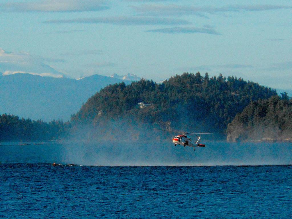 Richard Haines, a Dugualla Bay Heights resident, watched the whole incident just before 8 p.m. He saw the helicopter hovering at about 500 feet above two kayakers, one of whom was in the water.