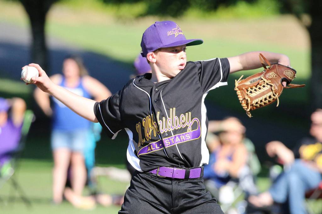 Blending strong pitching with lively bats and aggressive base running, the North Whidbey Little League 11/12 baseball team opened the District 11 tournament with a resounding 12-2 win over South Whidbey Wednesday, July 5, in Langley.
