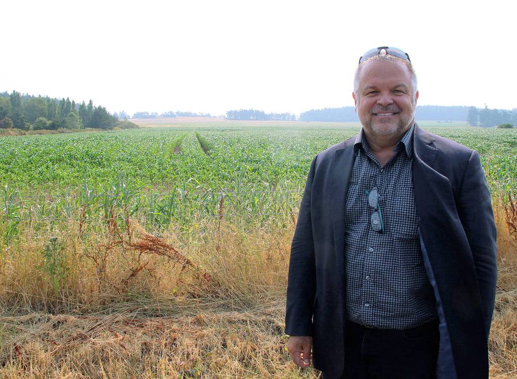 Photo by Jessie Stensland / Whidbey News-Times                                Oak Harbor resident Scott Thompson stands in front of a cornfield that his development group has proposed turning into a large affordable-housing project.